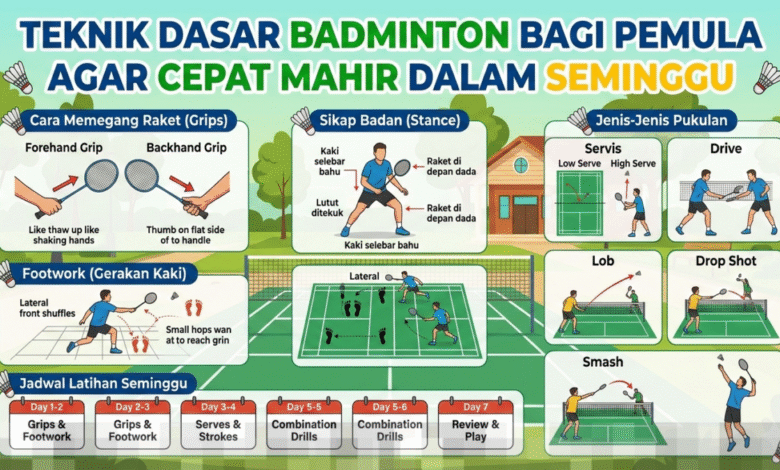 Badminton adalah olahraga yang terlihat sederhana namun memerlukan teknik yang tepat agar pemain pemula dapat cepat mahir. Untuk mencapai kemajuan signifikan dalam waktu singkat, khususnya dalam satu minggu, penting bagi pemula untuk memahami dan menguasai teknik dasar badminton. Dengan pendekatan yang terstruktur dan latihan yang konsisten, Anda bisa segera merasakan peningkatan kemampuan bermain.
